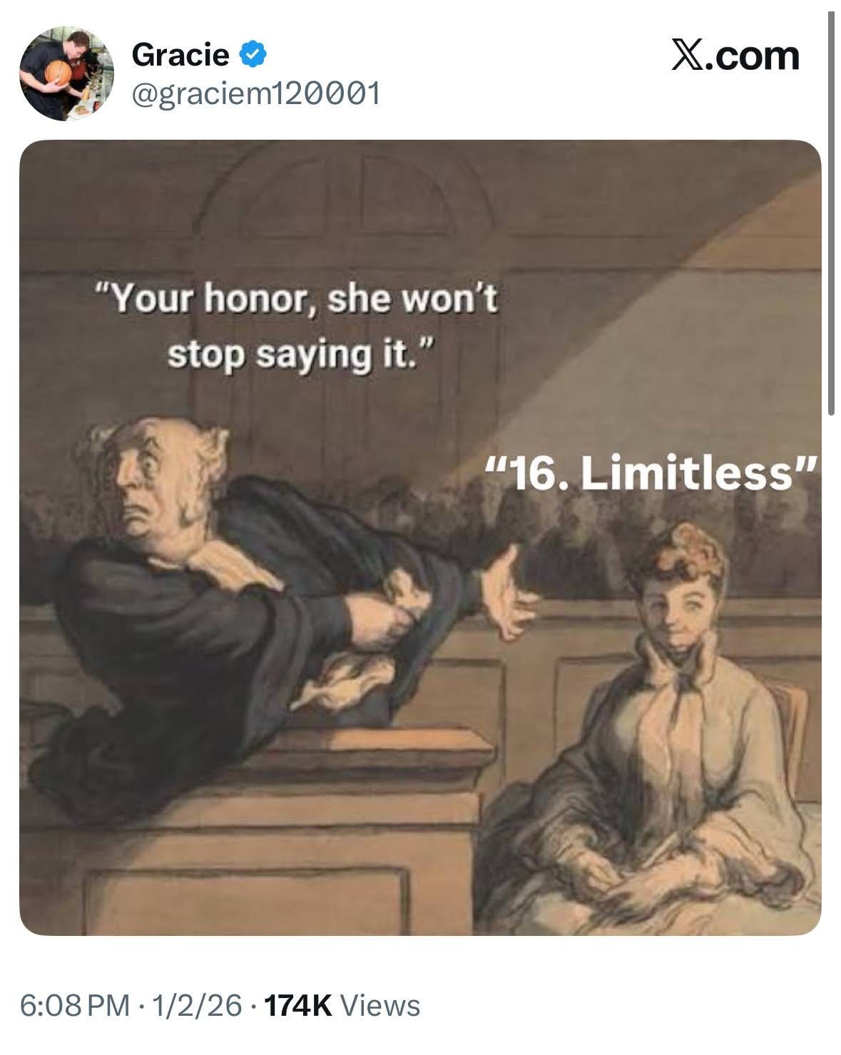 The 365 buttons girl embodies the spirit of the internet. Optimistic, Didactic, Stupid, Defensive. ICYMI, in the comments of the TikTok I included last week about the 2026 rebrand, a girl said she was going to get 365 buttons to monitor the passage of time. She was then asked a series of questions about why and how. Her response was “Hey so it actually only has to make sense to me for me to do it and I don’t feel like explaining it to anyone else.” which is classic girl-in-a-fight-repeating-something-that-really-inspired-her-from-a-quote-she-saw-over-a-picture-of-a-horse sentence construction. It really spoke to a contingency of people who are both making fun of her and know she’s right. It was kind of obvious that she was going to put the buttons in a jar or something, but her refusal to just say “I’m putting them in a jar” is how we got our first iconic moment of 2026. Sometimes the Diva Fit is worth it, rather than just explaining yourself.