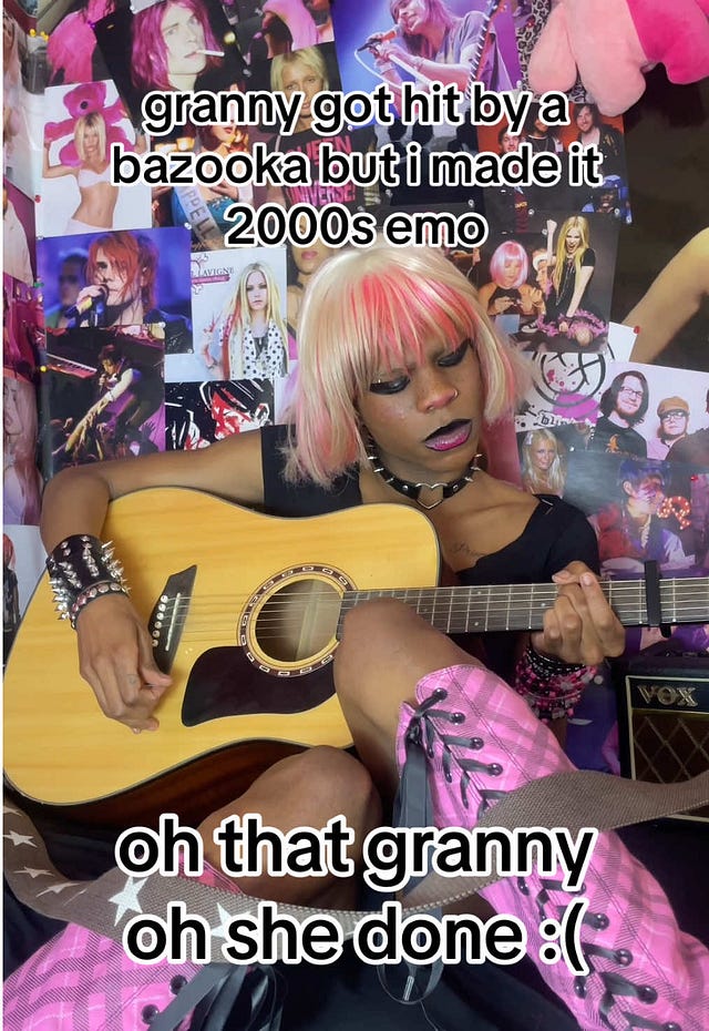 I kind of think that if you are going to post videos of yourself singing on the internet, it should also be funny. Too many people are just earnestly singing. They believe that talent alone is enough. It’s not. We don’t need another breathy cover of a Geese song. If you want to be someone in this industry, we need to see your take on “rest in peace my granny she got hit with a bazooka” and “gucci flip flops.”