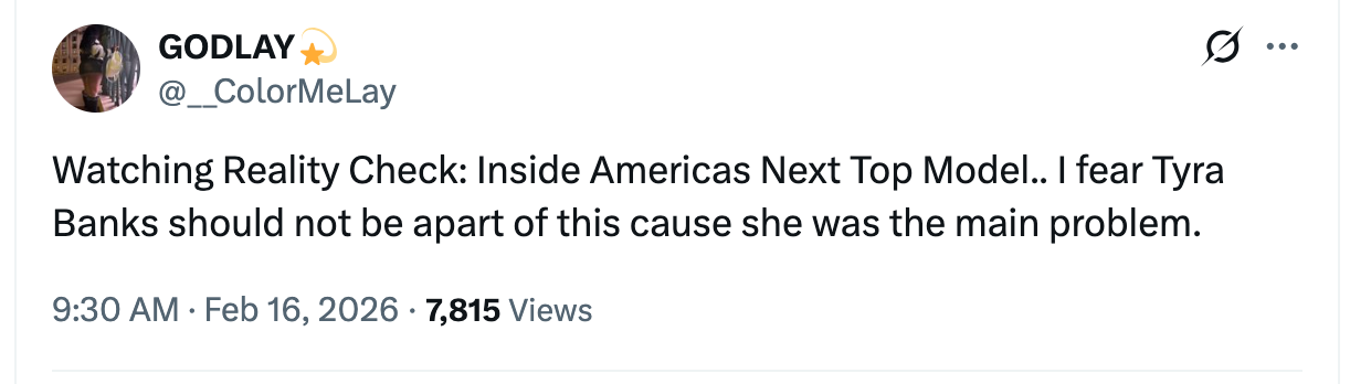 Every year around this time, Netflix puts out a “documentary” that is both stupid and bad. The legacy of America’s Next Top Model is complicated, and were not going to reach an answer as long as Tyra Banks is involved. I would be interested in a real dissection of the show, knowing what we know now, but the documentary feels like a good primary source for an essay or book I’d like to read about 2000s fashion media and reality television. As for Tyra Banks, the most damning thing about her was said quickly and easily by the Entertainment Weekly Bullseye when she announced the end of Tyra in 2009. You can quit your talkshow but it won’t make you Oprah.