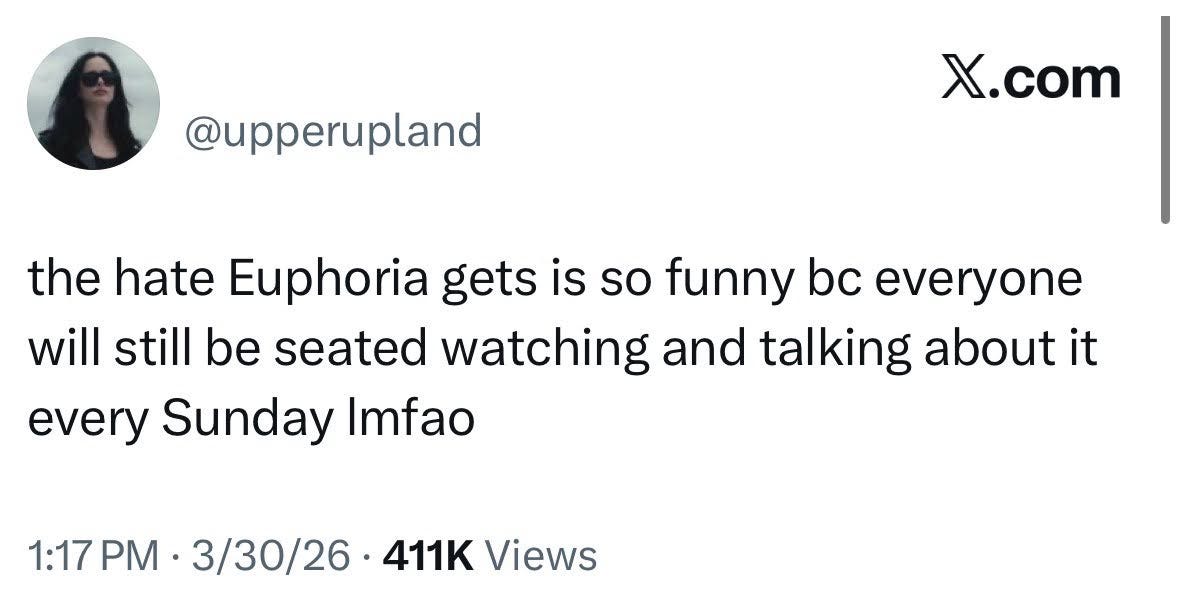 I kept asking the universe for something distracting to care about, and through a cruel twist of fate, I got what I wanted. Euphoria is a commitment I forgot I made in the Summer of 2019, when my post-grad boredom needed anything to look forward to. The show got Zendaya her Emmy and brought us Jacob Elordi and Sydney Sweeney. It legitimized Maude Apatow, Hunter Schafer, and Barbie Ferrara. At what cost? Euphoria Season 3 is how we pay the piper. No one involved still wants to be here, yet here we are. Everyone is going to come out of the woodwork to Have Opinions. I’ll be discussing both the episodes and the conversation around them. If you need a place for your Euphoria Opinions that is not Twitter, I’m here for you. I’ll keep drinking that garbage.