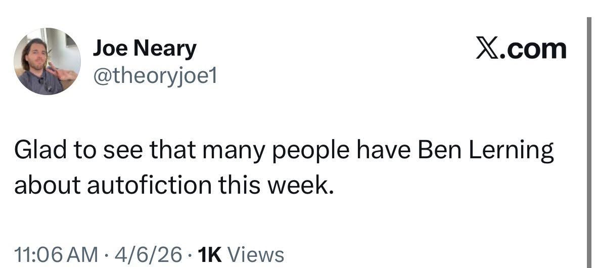I love book people. I can’t get enough of them. Their gossip is incredible because they act like their industry could still create Gore Vidal or Susan Sontag. And they all think they’re going to be that person, except they’re all shut-ins who won’t go on Subway Takes, which is the Charlie Rose of today. Sarah J Maas went on Call Her Daddy. That’s the culture. So all of their arguments about the best living novelist are really funny because it’s just their consensus plus book sales, while everyone else reads Heated Rivalry. In my understanding, Ben Lerner is a Jonathan Franzen type who is less popular but more well-liked. Jonathan Franzen is David Foster Wallace for stupid people (adjusted for inflation), and all of them are trying to be some combination of or reaction to Hemingway and Fitzgerald. It’s fun to watch them build this in real time while the rest of America doesn’t care.